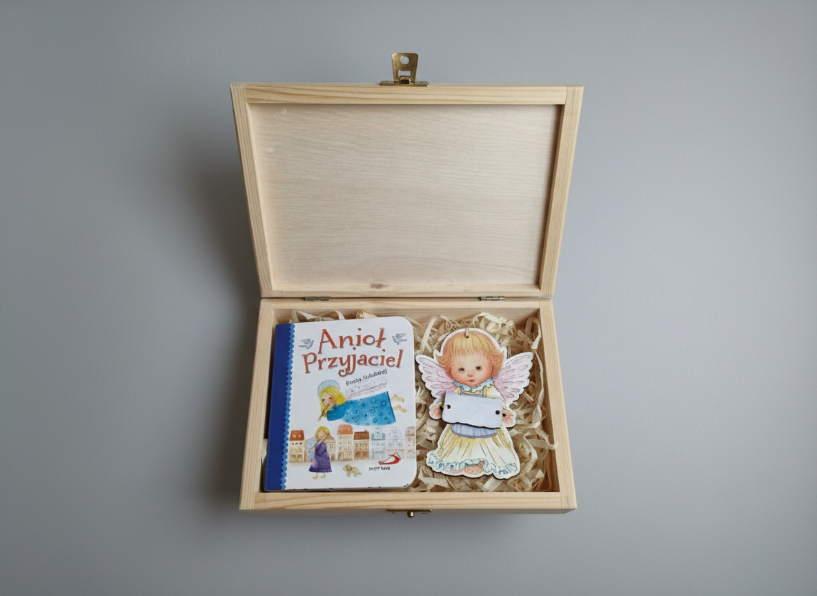 Pięknie zapakowany i wykonany z troską, zestaw MamyBobasy zawiera niezbędne akcesoria dla mam i niemowląt. Znajdziesz w nim: książeczkę z wierszykiem, drewnianego aniołka - zawieszkę. Wymiary pudełka 21,7x15,2x4,5cm.